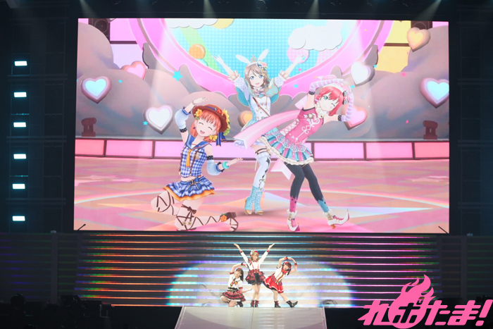 ソロ活動をメインに行っているという今までにないコンセプトの虹ヶ咲学園スクールアイドル同好会らしく自身の魅力をアピールした一人一人違う衣装で登場すると、「TOKIMEKI Runners」では抜群のチームワークを見せ歌とダンスで観客を魅了。1曲終えた後のMCではTVアニメ制作決定の喜びと感謝の気持ちを客席に伝えると、ラブライブシリーズではおなじみのコール&レスポンスが行われた。