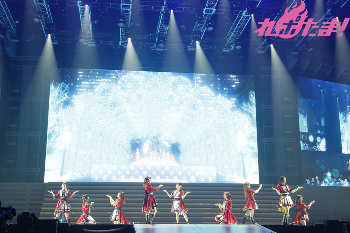 メドレーを終え会場中の歓声を浴びながら「いつまでもここにたい」と惜しむコメントを漏らしつつ、最後に披露したのは「Snow halation」。一面雪景色のように白く染まった会場が、MVの再現をするようにオレンジに染まっていく光景に会場の盛り上がりは最高潮に達していた。