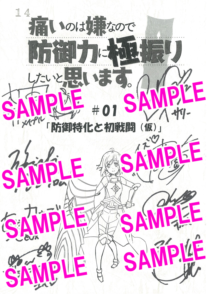 「痛いのは嫌なので防御力に極振りしたいと思います。」Blu-ray&DVD第1巻を下記の対象店 舗にてご予約・ご購入頂いた方の中から抽選で、キャストの直筆サイン入り台本をプレゼント!