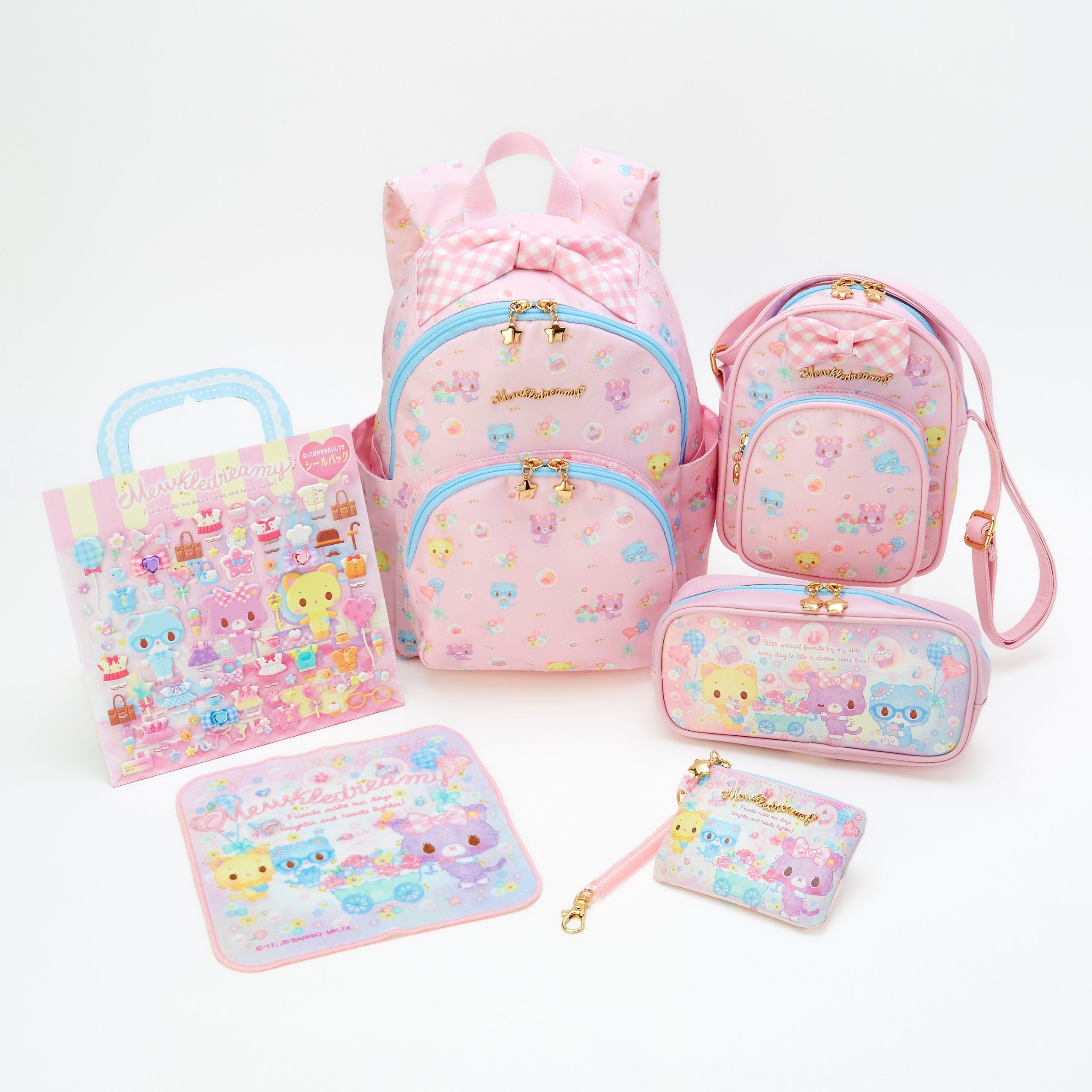 全国のサンリオショップやサンリオオンラインショップでは、2020年3月18日(水)より「ミュークルドリーミー キラキラシャボン玉 パーティーデザインシリーズ」が発売予定です。また、株式会社アガツマからはアニメ連動玩具を3月中旬頃より、全国サンリ オショップと(株)アガツマ商品取り扱い店舗にて発売いたします。該当商品の取扱いに関しては、3月上旬頃よりサンリオ公 式サイトにてお知らせいたします。
