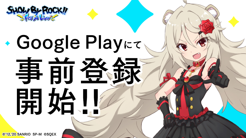 Google Play にて事前登録を開始いたしました。こちらを事前登録していただきますと、「SHOW BY ROCK!! Fes A