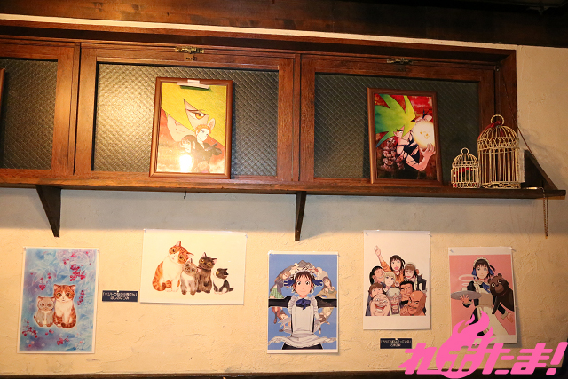 ▲店内の様子。今回のカフェでは硬派な作品の展示品も!