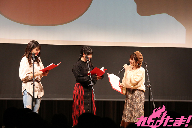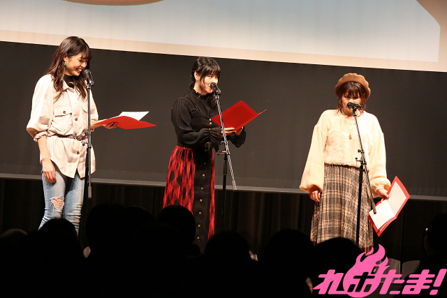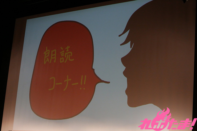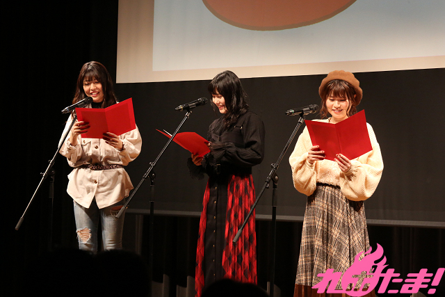 朗読コーナーは、『光る猫爪』に登場する1シーンを、ファンと一緒に演じるというお楽しみ企画も。なかには声優顔負けの演技をみせる参加者もいて、3人は滅多にない機会を楽しんでいた。