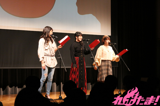 朗読劇は、お客さんの温かみを感じました。最初は照れていた方も、どんどん声が出るようになったり、アドリブを入れてくれる人もいて!声優3人は朗読元の人の演技はどこへやら……。キャラから声からアドリブしまくって楽しみすぎました!