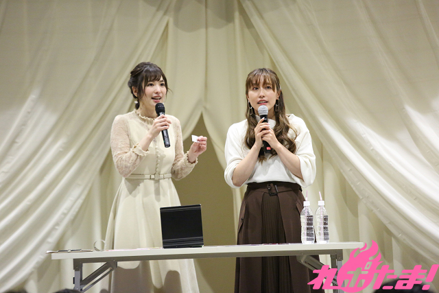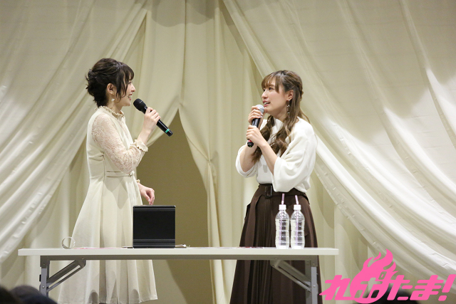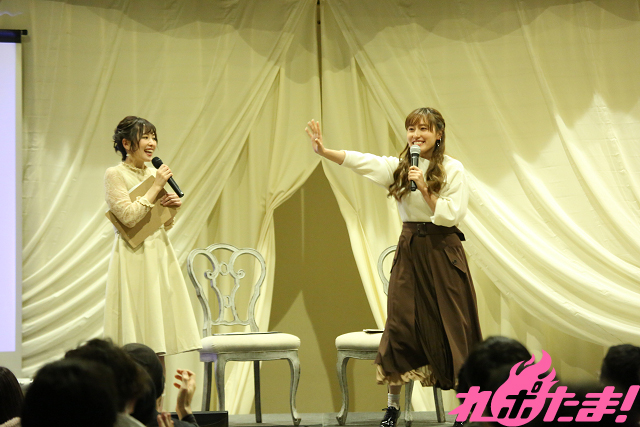 そんななか、卒業式を迎えた生徒が先生に対し「もう先生と生徒の関係じゃないから……」というシチュエーションを、ふたりでエチュードで披露することに。松嵜さんが先生役、佳村さんが生徒役を務め、佳村さんが先生をオトすために、まさかの禁じ手(?)を繰り出すなど、大いに盛り上がった。