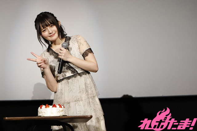 ここで、2月10日に●●歳の誕生日を迎える西さんへ誕生日ケーキがプレゼントされるという、バースデーサプライズが発動(実際は西さんに渡された台本にも明記されていたのでサプライズではなかったが)! 荻野さんとケーキに乗ったいちごをお互いに食べさせあうなか、記念撮影も行なわれた。なお、こちらのバースデーケーキは20:10上映開始の回にもリサイクルされたとのこと(笑)。