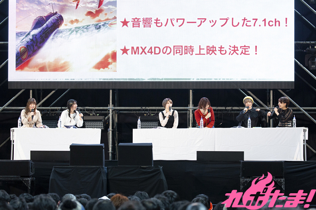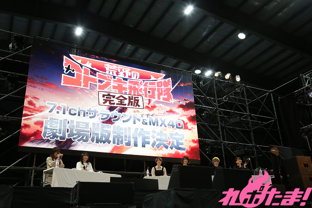 続いてのコーナーに移る前に、司会のふたりから劇場版『荒野のコトブキ飛行隊 完全版』の制作が決定し、2020年秋に公開されることが発表された。さらに大迫力の7.1chサラウンドでの制作やMX4Dでの同時上映も発表され、大喜びの6人。鈴代さんによると「コトブキ飛行隊の結成秘話も語られる」とのことだ。