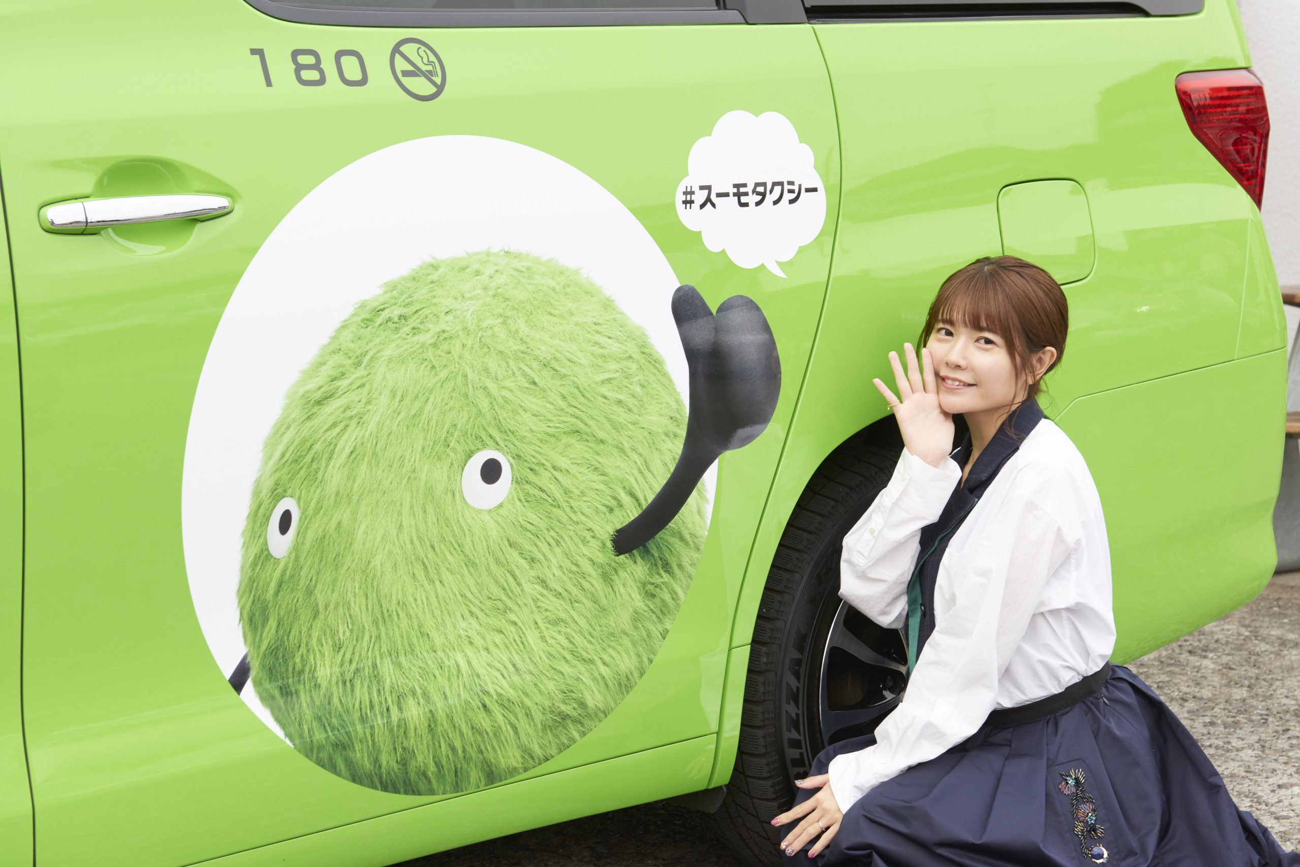 今回、このスーモタクシーに声優の竹達彩奈さんが乗車体験。緑色のスーモカラーのタクシーを見た竹達さんは、「インパクトありますね!スーモも可愛い!」と、乗車前から目を輝かせていました。そして、実際に乗車すると、その乗り心地や内装について「遊園地のアトラクションみたい!」と語りました。