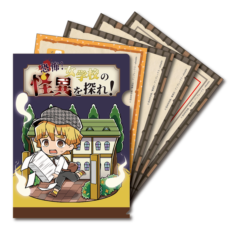 さらに、TVアニメ『鬼滅の刃』がリアル謎解きゲームとコラボした「鬼滅の刃×リアル謎解きゲーム 玩具店に潜む鬼を討て!」も開催中です。第一弾は、周遊謎解きキットを販売。期間中に謎解きキットを使用してアニメイト店内にある謎を解き明かしてください。また第二弾は、持ち帰り謎解きクリアファイル『我妻善逸』『嘴平伊之助』の2種類を販売します。