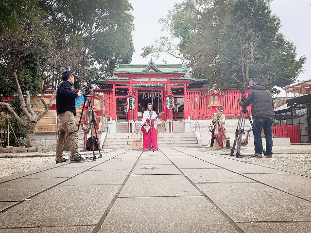 神社の境内を使っての撮影という理由もあり、時折参拝者もやってくる。そのたびに礼を尽くし、参拝者のため撮影を中断。そこも、神の宿る地を舞台に撮影しているからこその気持ちの現れだ。