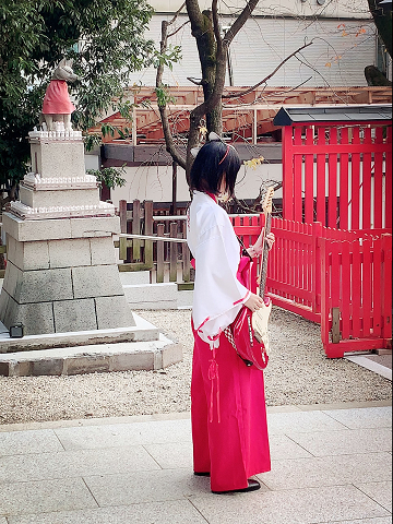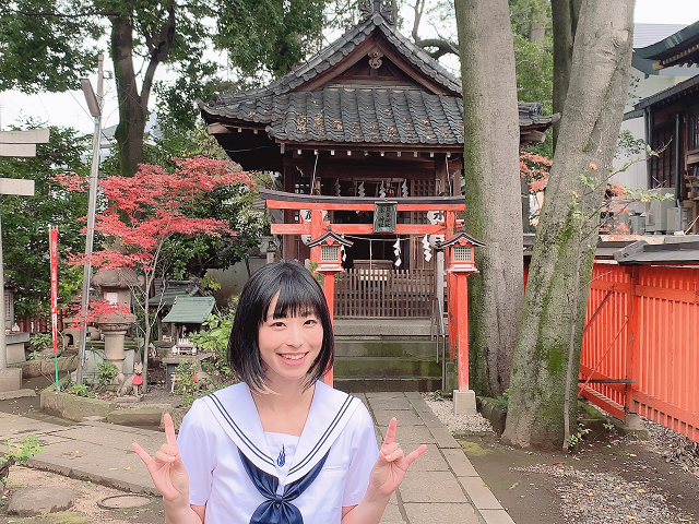 撮影を行なった馬橋稲荷神社は、わたしの東京一押しの神社。しかも、作品とリンクする稲荷神社。そこは、パワースポットとしても有名なところ。撮影中も、「あっ、そこで神様が観てくれている」みたいな感覚を覚えながら行なえば、非常に寒かった時期にも関わらず、あったかい陽射しを浴びながらの撮影だったように、祝福を受けている気持ちにもなっていました。巫女や制服姿での撮影は、正直恥ずかしかったです。とくに、制服はね(笑)。