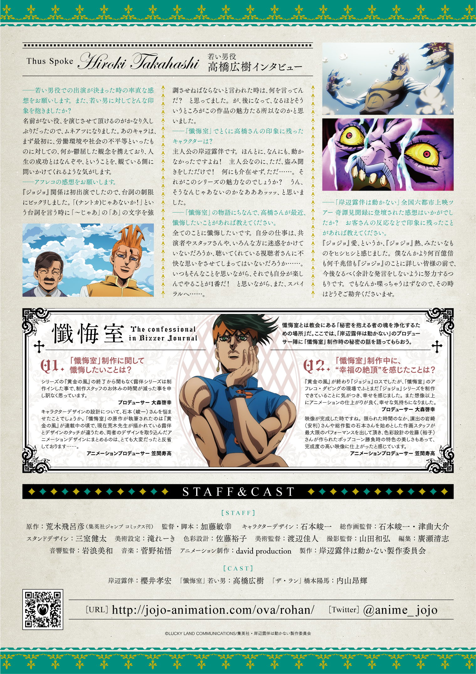 「懺悔室」が収録された「岸辺露伴は動かない」OVA <コレクターズエディション>は3月25日(水)発売です! そして若い男役 高橋広樹のインタビュー等を掲載したWEBリーフレット企画Bizarre Journal Vol.3を同時解禁!!