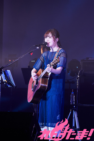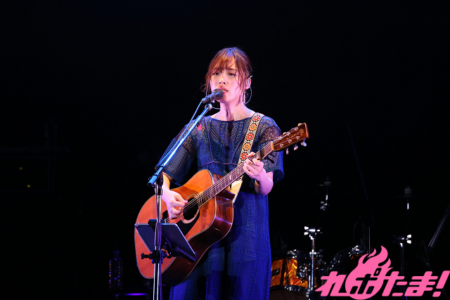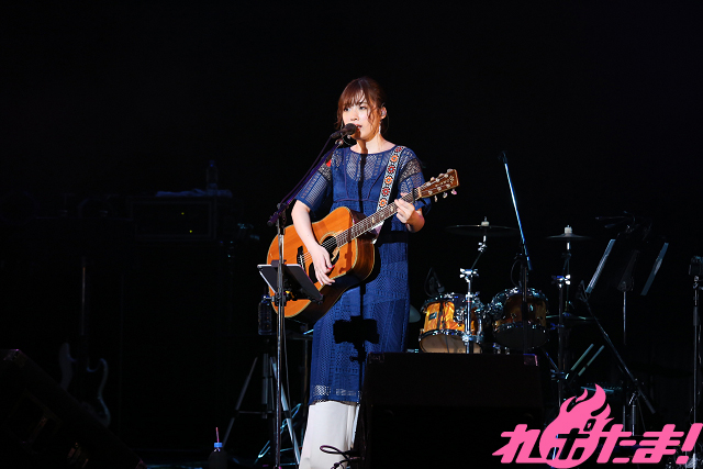 第1部は「ごにょごにょ、ららら」と称した、ゲストとのトークメインのイベント。そして第1部と第2部「今夜は夢を見る」の間にはVIPチケット購入者を対象としたミニライブが開催された。ギターを手に“弾き語り”が行なわれたのだが、大原さん自身、デビュー前はピアノ弾き語りで活動していたので、ギターの”弾き語り”は少なかったそう。