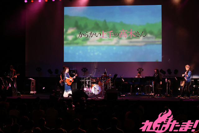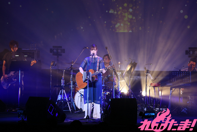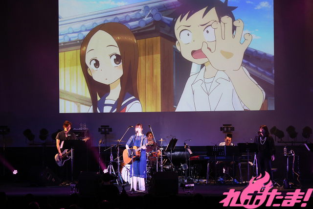 「今日のライブがみんなの心の支えになれば」と語り、披露したのはアニメ『からかい上手の高木さん2』OPテーマ「ゼロセンチメートル」。会場全体がハートフルな空気に包まれると、オレンジ色の光に照らされ「ノスタルジア」、アニメ『からかい上手の高木さん2』最終回の挿入歌として起用された「君と光」を、アニメ本編映像とともに披露した。