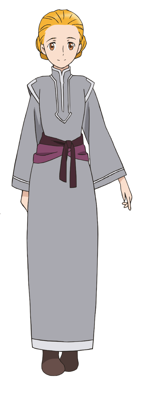 マインの側仕え。灰色巫女。 以前はクリスティーネの側仕えで絵が得意だった。後にマイン工房の絵師として活躍する。過去のある出来事から男性恐怖症になり、孤児院の女子 棟に引きこもっている。孤児たちのことをいつも気にかけている、孤児院の母的存在。