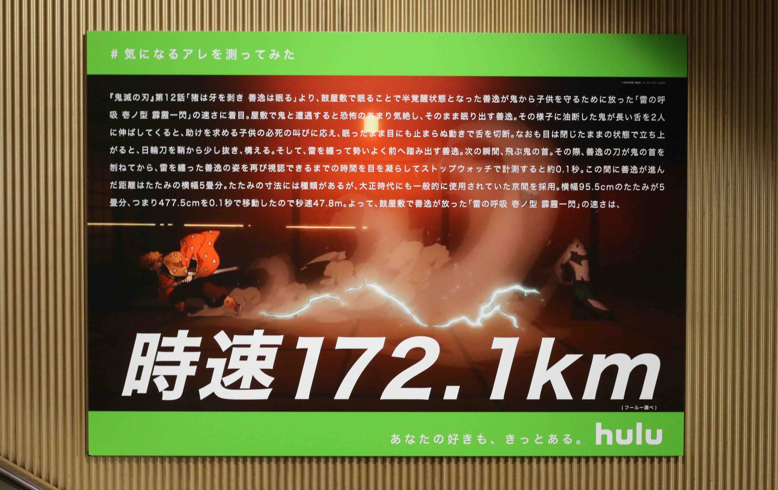 HJホールディングス株式会社が運営するオンライン動画配信サービスHuluは、『鬼滅の刃』や『約束のネバーランド』、『ターミネーター2』など人気作品の“気になる速度”を自社で勝手に測定した結果を公開する「#気になるアレを測ってみた」キャンペーンを実施します。