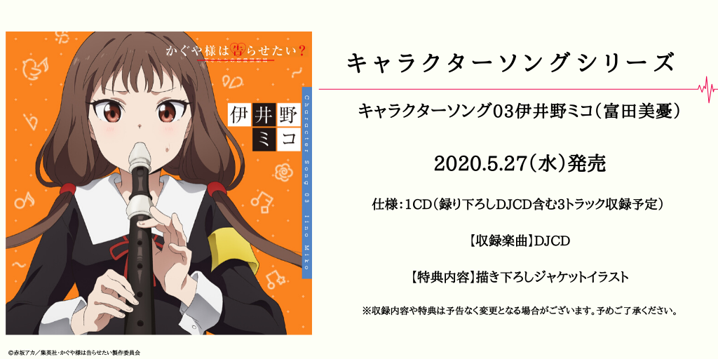 ■「かぐや様は告らせたい?~天才たちの恋愛頭脳戦~」キャラクターソング03 伊井野ミコ(富田美憂)