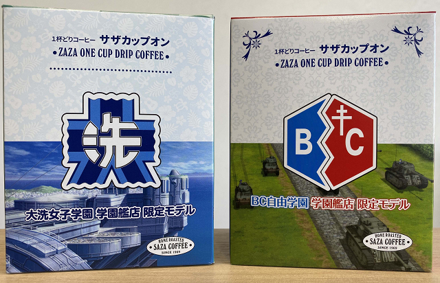 茨城が誇るコーヒー専門店『サザコーヒー』より、水戸店・大洗店の みで販売しているアニメ「ガールズ&パンツァー」とのコラボ商品『 大洗女子学園コーヒー』&『BC自由学園コーヒー』5枚入りのサザカップオンをセットが登場!