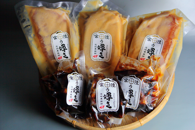 大洗で「お弁当の万年屋」を運営する「(有)こうじや」より、茨城が誇る ブランド豚「常陸の輝き」の、味噌漬けと角煮のセットがラインナップ !「常陸の輝き」は近年茨城県の養豚関係者がブランド化し、注目を集 めるブランドで、肉質が柔らかく、脂身が甘いのが特徴です。