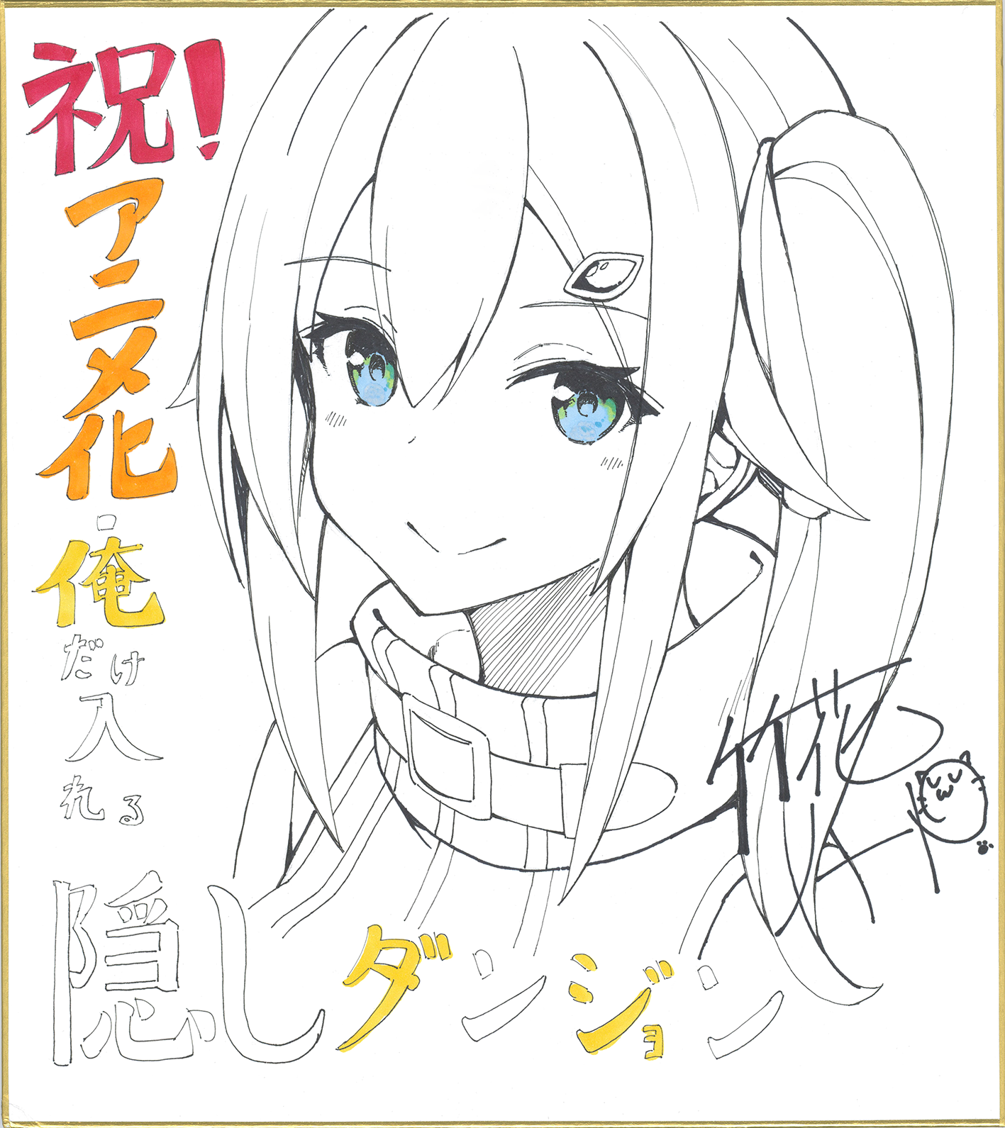 さらに、こちらのお祝いイラストが描かれた色紙を アニメ公式Twitter(@kakushidungeon)をフォロー&リツイートしていただいた方の中から抽選で1名様にプレゼントいたします。 詳細はアニメ公式Twitterをご確認ください。