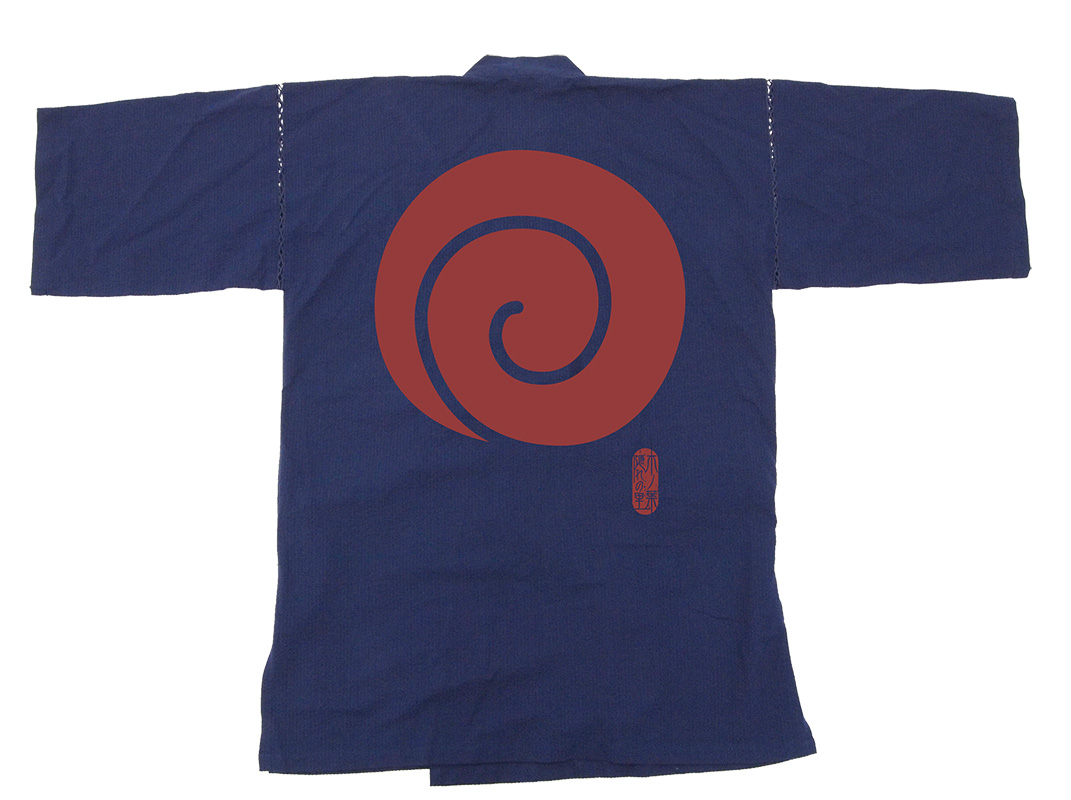 背中には大きくナルトとお揃いの渦巻き模様を、左胸には木ノ葉マークをワンポイントでデザイン。