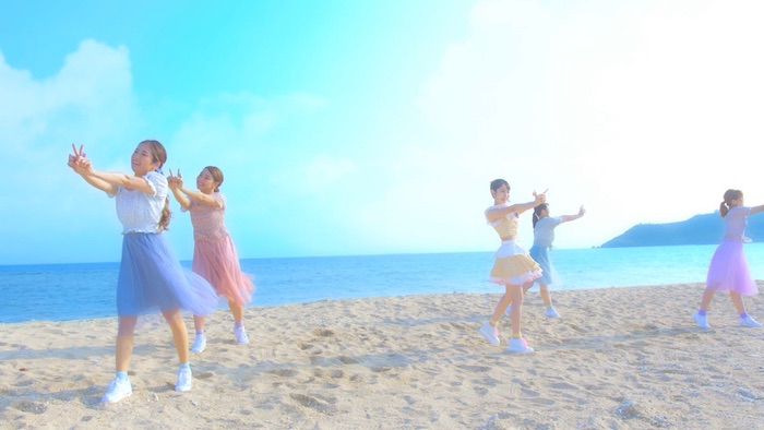 撮影は沖縄で行ったもので、青い海や晴れ渡った空、新緑の生い茂る自然なども見どころの1つだ。MVの中で、小倉がライブ前に行う “ゆい・ゆい・おー!” という円陣の振りや、歌詞になぞり5人のピースを集めて星を作る振り付けなど、仲間との共演によって生み出されたシーンにもぜひ注目してほしい。
