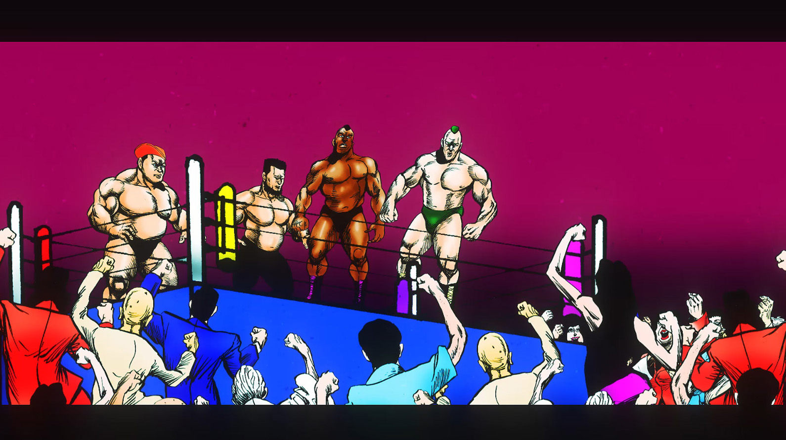 先行して解禁された場面写真では、プロレスラーに扮したサイプレス上野とロベルト吉野が、コーナーポストに扮したももクロメンバー達に支えられ未知なる強敵と戦っている様子が公開された。果たしてこのMVが意味する内容とは!? 特別番組を見て、是非チェックしよう!