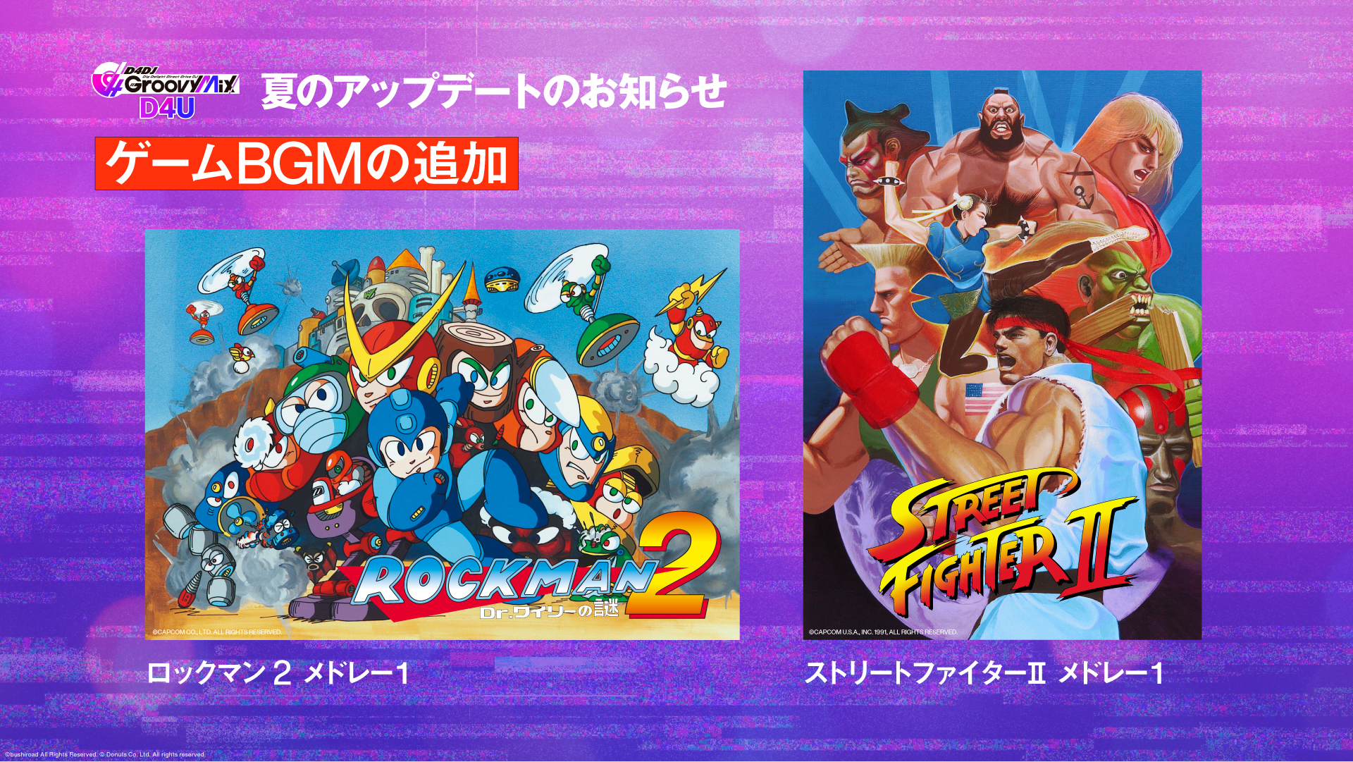・ゲーム BGM 曲「ロックマン 2 メドレー1」、 「ストリートファイターⅡ メドレー1」を追加いたします。