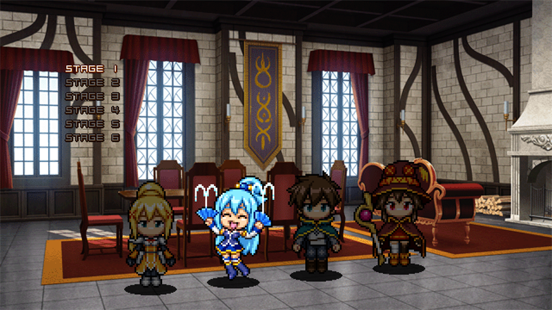 ステージは全6面。TVアニメ『この素晴らしい世界に祝福を!2』や『映画 この素晴らしい世界に祝福を! 紅伝説 公式サイト』の世界観をベースにしたストーリーが展開されます。カズマが石版の呪いを解くために奮闘する、ADVゲーム本編とあわせて、こちらもぜひお楽しみください。