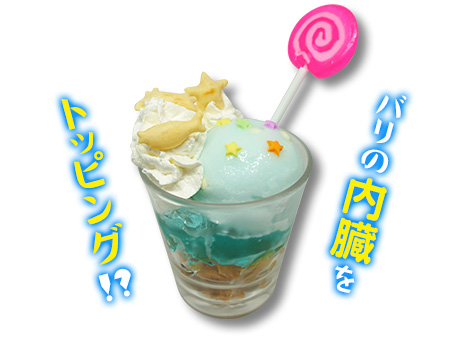 ラムネアイスにはバリ(アイゴ)の内臓(にそっくりなペロペロキャンディ)を添えました!