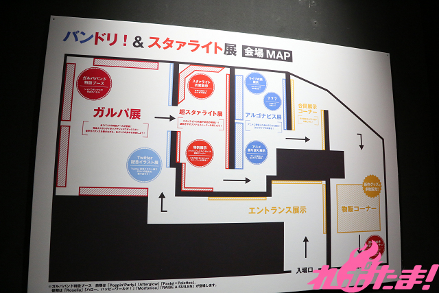 『ガルパ展』『超スタァライト展』『アルゴナビス展』そして『合同展示』という構成になっており、各々の作品の展示が行なわれているほか、入り口で支給される端末により、音声コンテンツも楽しむことができる。