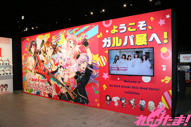 各作品を簡単に紹介したゾーンの先では、まずは「ガルパ展」が展開。ここでは『バンドリ! ガールズバンドパーティ!』に登場する、全7バンドのバンドの等身大のスタンディポップなどが展示。キャラクターたちが居並ぶ姿は壮観だ。