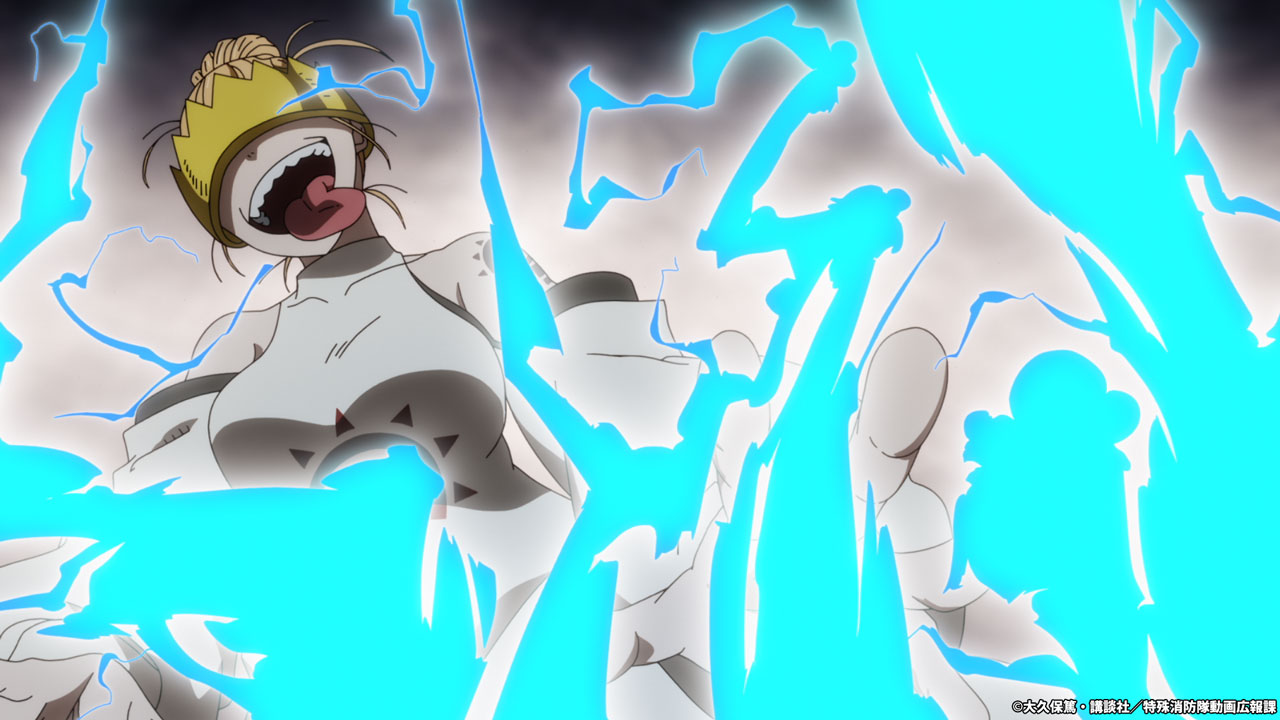 “焰ビト”を元に戻す方法を見つけるため、シンラは“アドラリンク”で見た第4特殊消防隊のアーグ大隊長のもとを訪れる。異様な様相でアーグに迫られるシンラだったが、突如謎の女性と“アドラリンク”がおこり──!?