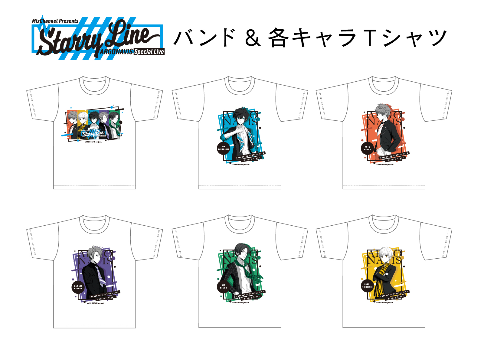・楽屋裏鑑賞チケット +Argonavis メンバー×MixChannel T シャツ(全 5 種): 各 6,000 円