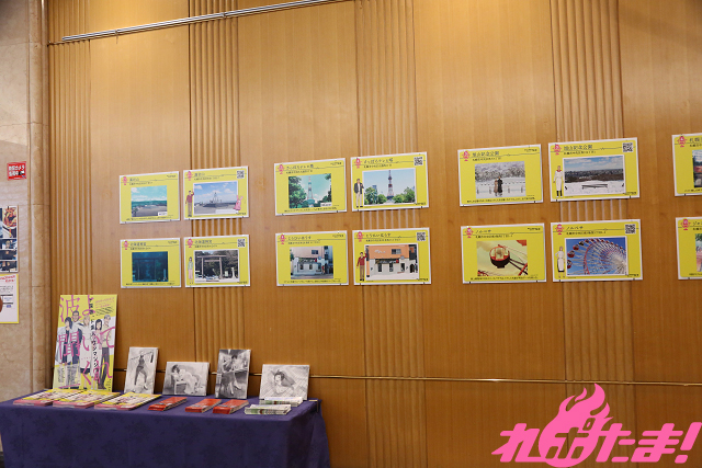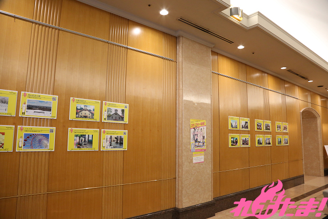 ホテルのロビーには物語内で舞台になったスポット(今回のスタンプラリーのチェックポイントにもなっている)の場面写真と実際の写真が並べて展示されており、それぞれ比較しながら楽しむことができる。