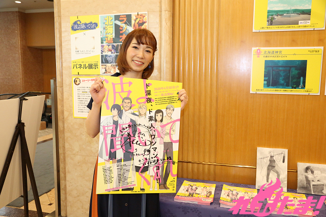 ラリーがスタートした6月25日の午後、札幌駅前にある「センチュリーロイヤルホテル」にて、主人公の鼓田ミナレ役・杉山里穂さんが地元メディアのインタビューを受けた。