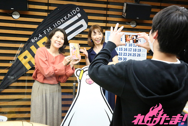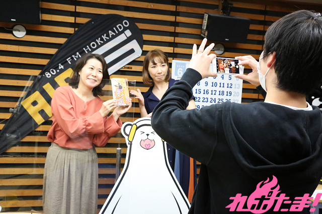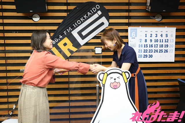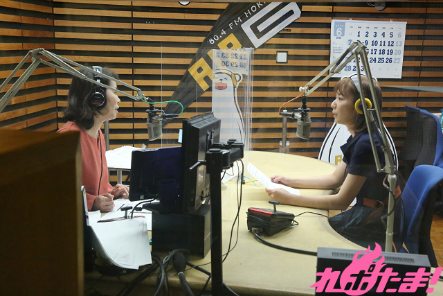 18時過ぎには、杉山さんとミナレがパーソナリティを務める『波よ聞いてくれ』のラジオ番組『波よ聞いてくれ~Wave, Listen to me!~』が放送されているAIR-G’(FM北海道)のスタジオへ。まずは人気女芸人のきーぽんさんがパーソナリティを務める生放送の帯番組(毎週月~木曜 16時~18時55分放送)『LUV TRACKS』にゲスト出演し、この夜放送される最終回の告知を行なった。