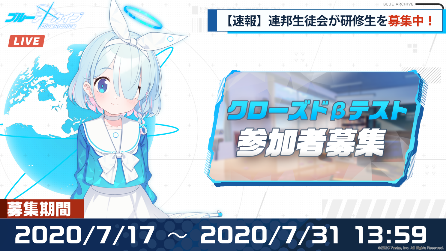 「ブルーアーカイブ -Blue Archive-」のリリース開始に先駆け、Androidを対象としたクローズドβテストを下記の概要で実施いたします。