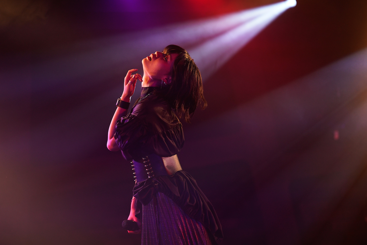“恋って不思議だ”というセリフから始まる語り。“いろんな形があって人によって違うが、人の心を乱す力があるのだ”“恋をしていると人は強くなり、輝いていく。嫉妬や悲しみや不安に覆われることだってあるけれど、そこで見える本音が人間的である”と続けると、“そしてステージから見える景色は恋そのものだ”と語ったところで、声が上ずる。“だからわたしもみなさんの恋になりたい”と結ぶ言葉に導かれるように、柔らかなポップチューン「Lemon Gelato」が響き出す。睦月周平の手による楽曲にミズノゲンキとeNuが歌詞を乗せたキュートなナンバーを、等身大の少女らしさが詰まった甘い歌声で聴かせていく。序盤のクールな表情とはまた違った彼女の魅力を知ることになった。