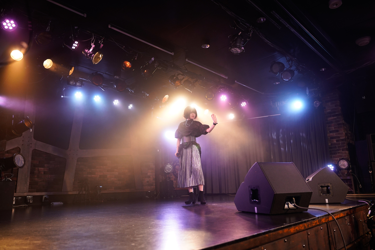 再び無人のステージにスポットライトが当たるとMCパート。「自分がこの世で一番嫌い」。そんなセリフが口癖になった少女が、自分の夢を見つけていく様が、赤裸々に紡がれていく。「少女は消えない不安を、哀しみを、痛みを音楽に変えて。少しでも自分を愛せる自分になるために、自分の本音に耳を傾けて。