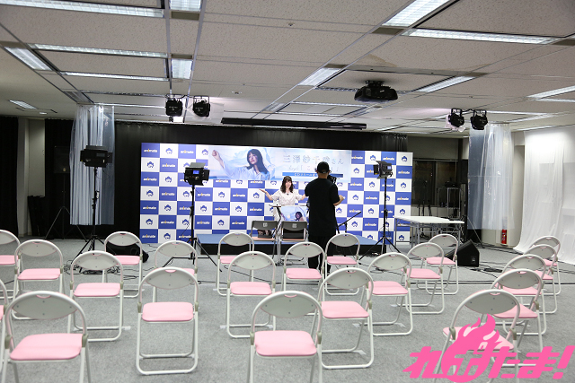 本来はファンを会場に招いてトークを行なう予定だったのだが、新型コロナウイルスの影響もあり、配信イベントという形で開催されることとなった。会場には客席を想定したイスが並べられ、「イベント会場」の雰囲気を演出していた。