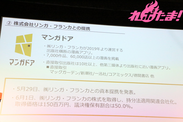 社長は「マンガドア」について「出版社と近い媒体と位置付けられていると自負しています。同業界で信頼をいただき、出版社様からコンテンツを預けていただいたので、その基盤を大事にしつつ、取次会社とのリレーションも大事にしていく所存です。