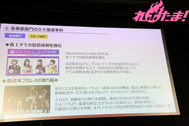 「ブシロードはカードゲームから始まり、新日本プロレスを買収、最近ではライブコンテンツということで、オフラインに強い企業かと思われている人も多いかもしれません。今日は少しでもその考え方を変えていただければと思います」とコメントした。