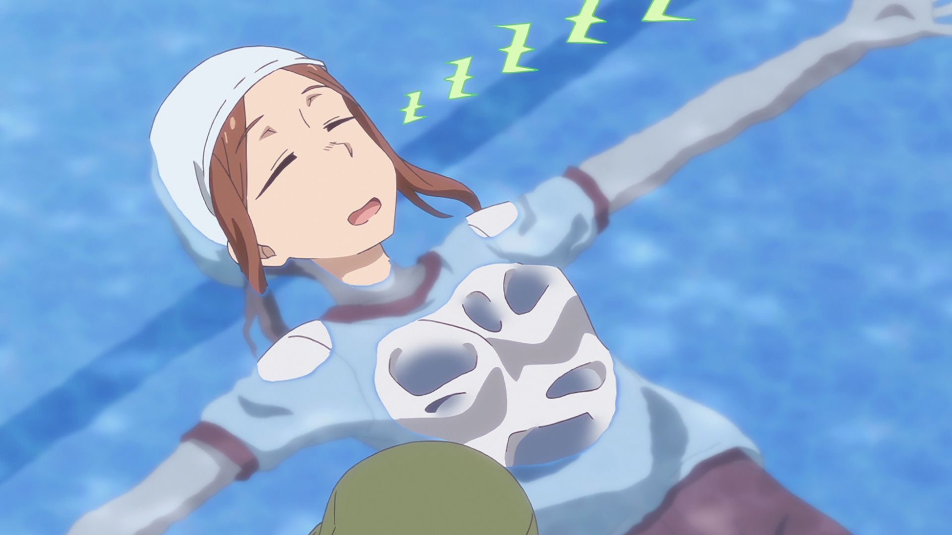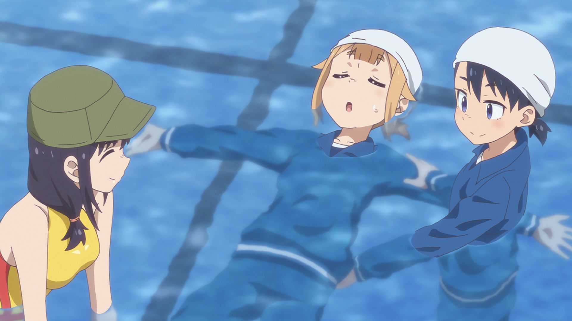 学校での救命講習会に参加した陽渚と夏海。陽渚は⼈⼯呼吸の練習が上⼿く⾏かず、⼈を助けられる⾃信がない、と不安げな様⼦です。⼆⼈が渡り廊下を歩いていると、どんよりとした⼤野が現れました。今⽇は部活でも着⾐⽔泳の練習があるため、泳げない⼤野は気が重い様⼦。放課後、プールに集合したていぼう部の⾯々でしたが……。