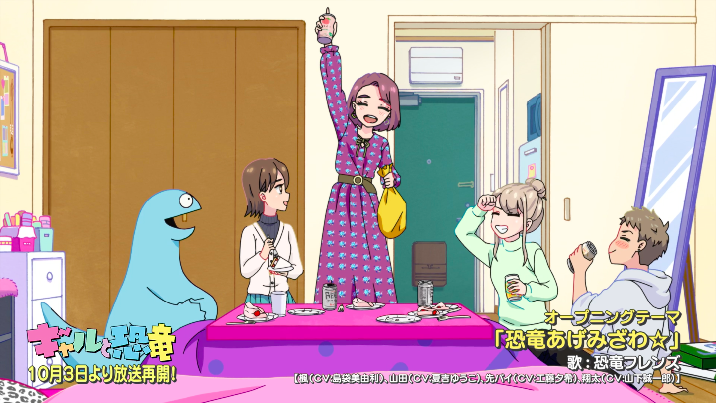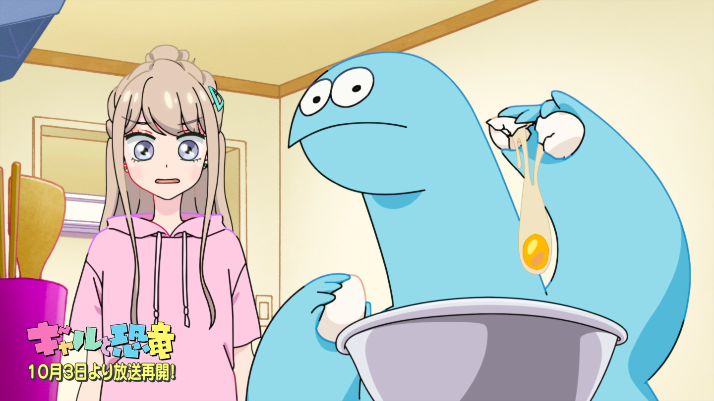 今回のPVでは新作エピソードである第8話以降の映像を、放送に先駆けて観ることができる。何やら楓の家に集まる恐竜と仲間たちの様子や、帽子を片手に素振りのような動きをする真剣な表情の恐竜など、どんな内容か気になるカットが盛り沢山のPV第2弾を是非ともチェックいただきたい。なおオンエアスケジュールは、まず10月3日(土)の放送より毎週第1話から第7話までの再放送をお届けし、第8話より新作エピソードが放送される予定だ。