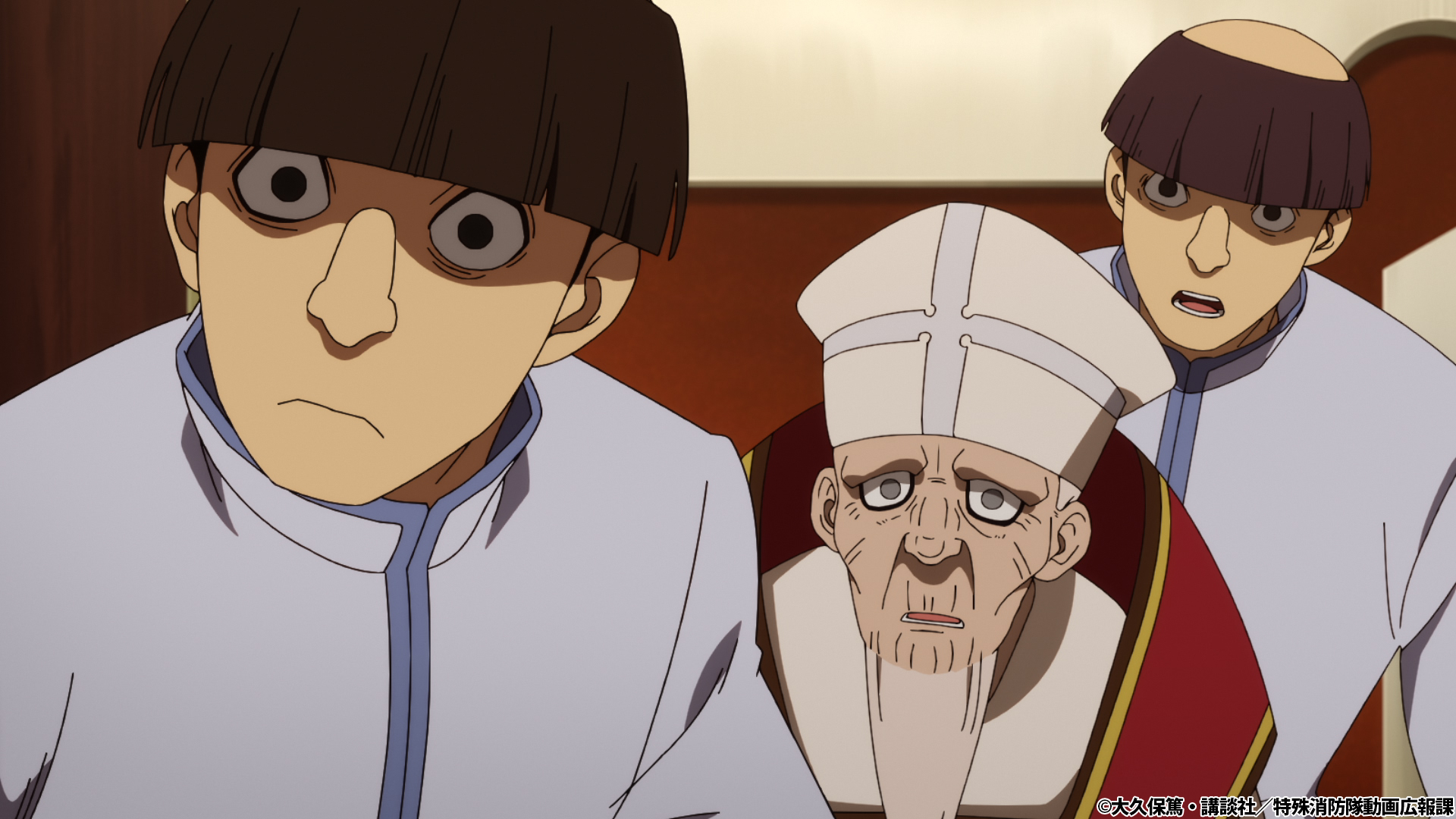 東京皇国へと帰還したシンラたちは「聖陽教の聖典に偽りがある可能性」を桜備へ報告する。聖陽教への不信が募る中、第8特殊消防隊は次に進むべき道を見出せずにいた。一方、浅草を守護する第7特殊消防隊の紅丸の元に、“ある男”が訪れる──。