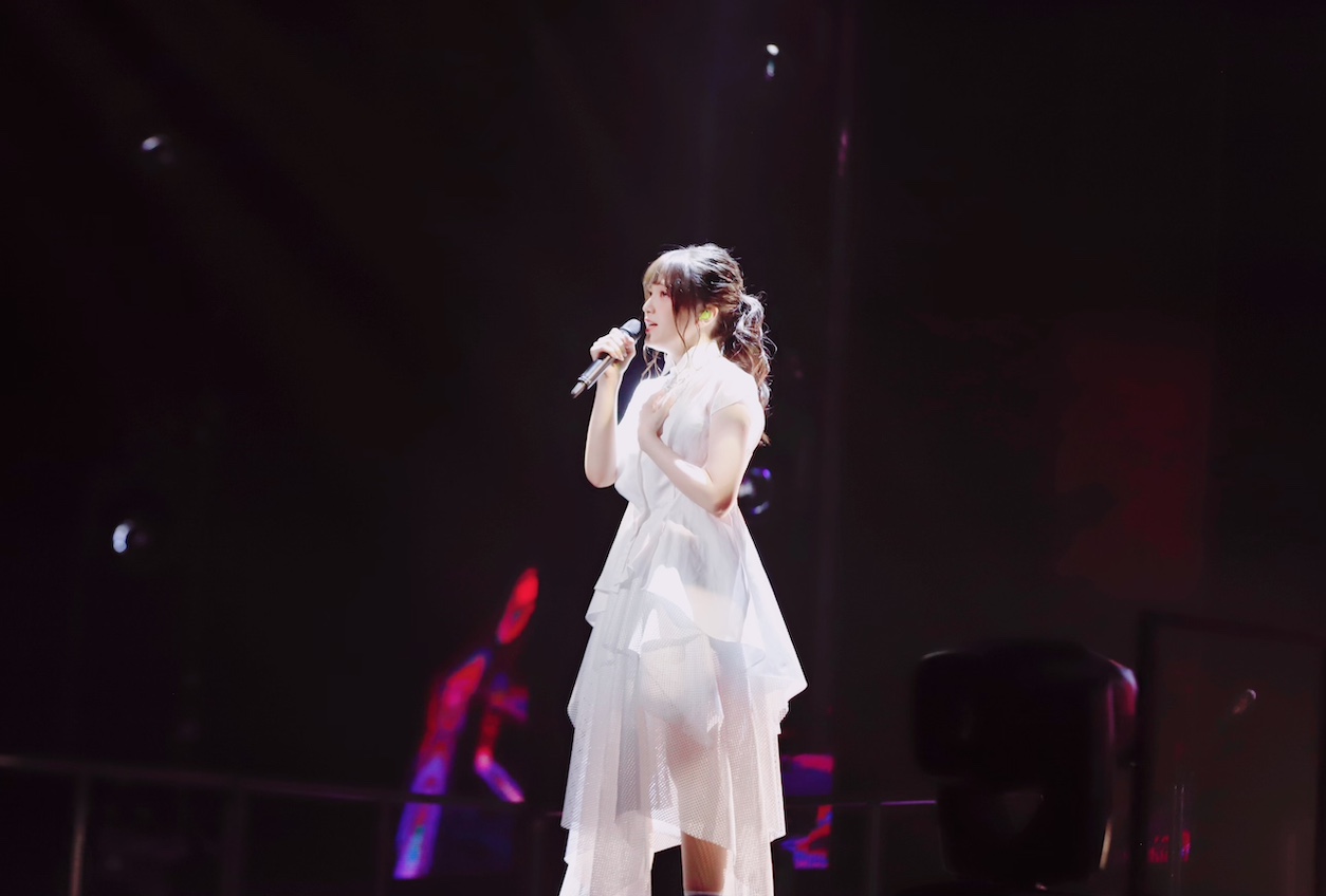 そして、6月に発売された1stアルバム「STYLE」の収録曲を中心に、「INNOCENT」や「23時の春雷少女」といった色とりどりのナンバーを次々に披露。曲間には、それぞれの楽曲イメージに合わせた衣装チェンジを幾度も行ない、青・黒・白など視覚的な七変化でも魅せていく。バンド・ダンサー紹介が終わった後には、TVアニメ『私に天使が舞い降りた!』の姫坂乃愛キャラソン「アタシ♡カワイイ♡宣言!!!」や、堀北鈴音役で出演していたTVアニメ『ようこそ実力至上主義の教室へ』のオープニングテーマ、ZAQの「カーストルーム」のカバーなど、ライブならではの趣向で客席をわかせた。