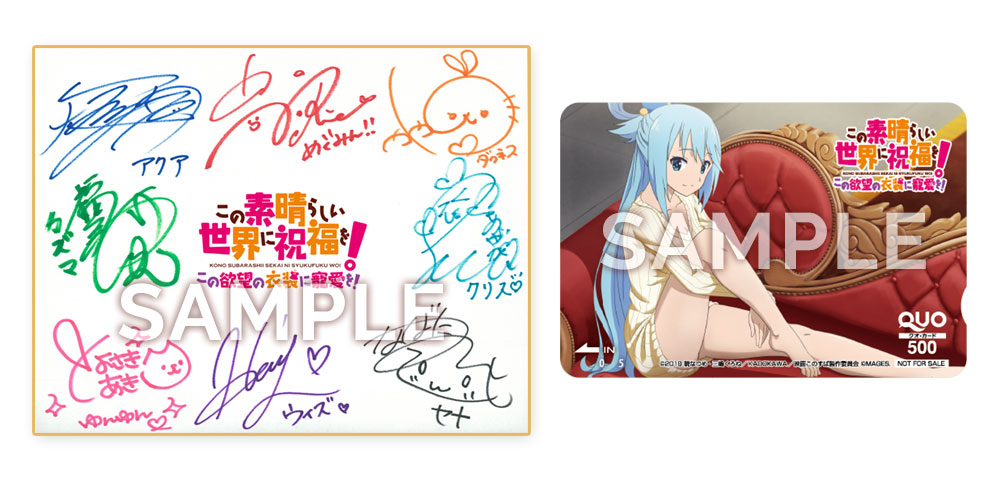 <A賞:集合サイン参加声優> 福島 潤(カズマ役)/雨宮 天(アクア役)/高橋李依(めぐみん役) /茅野愛衣(ダクネス役)/堀江由衣(ウィズ役)/豊崎愛生(ゆん ゆん役)/諏訪彩花(クリス役)/生天目仁美(セナ役)