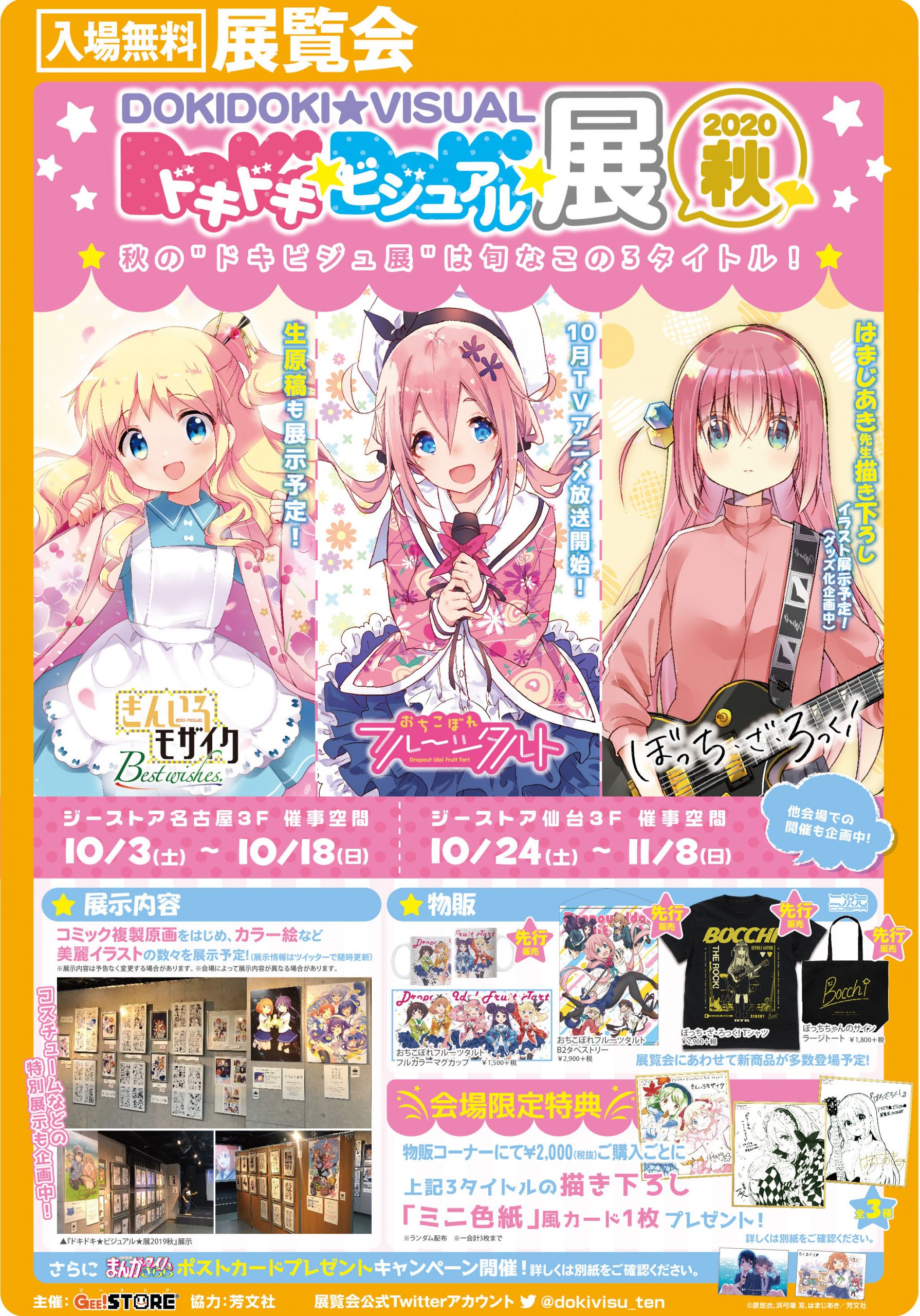 好評につき、今回で第8回目となる”まんがタイムきらら”作品の美麗なコミック複製原画やカラーイラストなど展示やグッズが盛りだくさんの『ドキドキ★ビジュアル★展覧会2020秋』が開催決定!