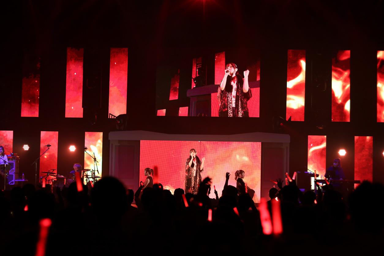 アンコールを要求するクラップに誘われて、ライブツアーTシャツを着て登場した鬼頭は「君の花を祈ろう」を、終わりゆくライブを包みこむように歌唱すると、最後に「こんなにも沢山の方々に集まっていただき、私は本当に支えられて生きているんだと実感できました。まだ難しい状況が続くと思いますが、皆さんとまたお会いできることを楽しみにしていますし、最高のライブだったと思えるように最後の曲を歌いたいなと思います。行くぞ〜〜!!」と高らかに宣言。